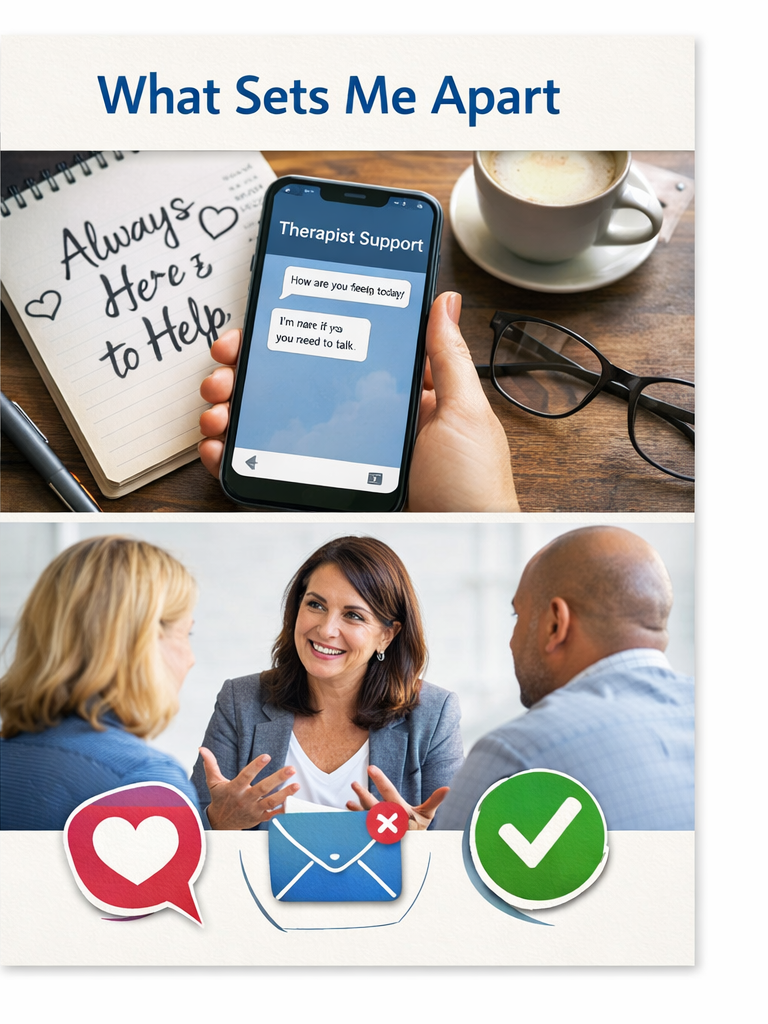 What sets my practice apart is the combination of collaboration, practical strategies, and ongoing support. I work to balance a kind, empathetic approach with the willingness to challenge clients when it’s necessary to uncover blind spots or shift perspectives. Many of my clients, including fellow counselors, appreciate this blend of understanding and expertise. Additionally, I provide secure telehealth sessions and offer messaging between sessions for clients I see regularly—an approach I’ve used since 2017 that helps clients address challenges in real time, stay on track with their goals, and achieve meaningful results more efficiently.